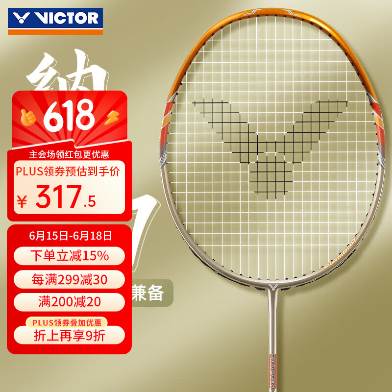 VICTOR经典之作,羽拍中的AK47,攻守兼备!目前京东自营售价239元,下单立减15%,详情页可领满299-30元优惠券,1件9折PLUS补贴券,领200-20补贴券,加凑单品一起下单(下单后可T),实付新低251.45元包邮白菜价!以往低价360元以上!